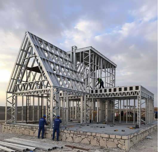 In-house assembled steel frame, precisely engineered and set up on-site for rapid construction. Completed home delivered within two months — a showcase of precision, quality, and efficiency